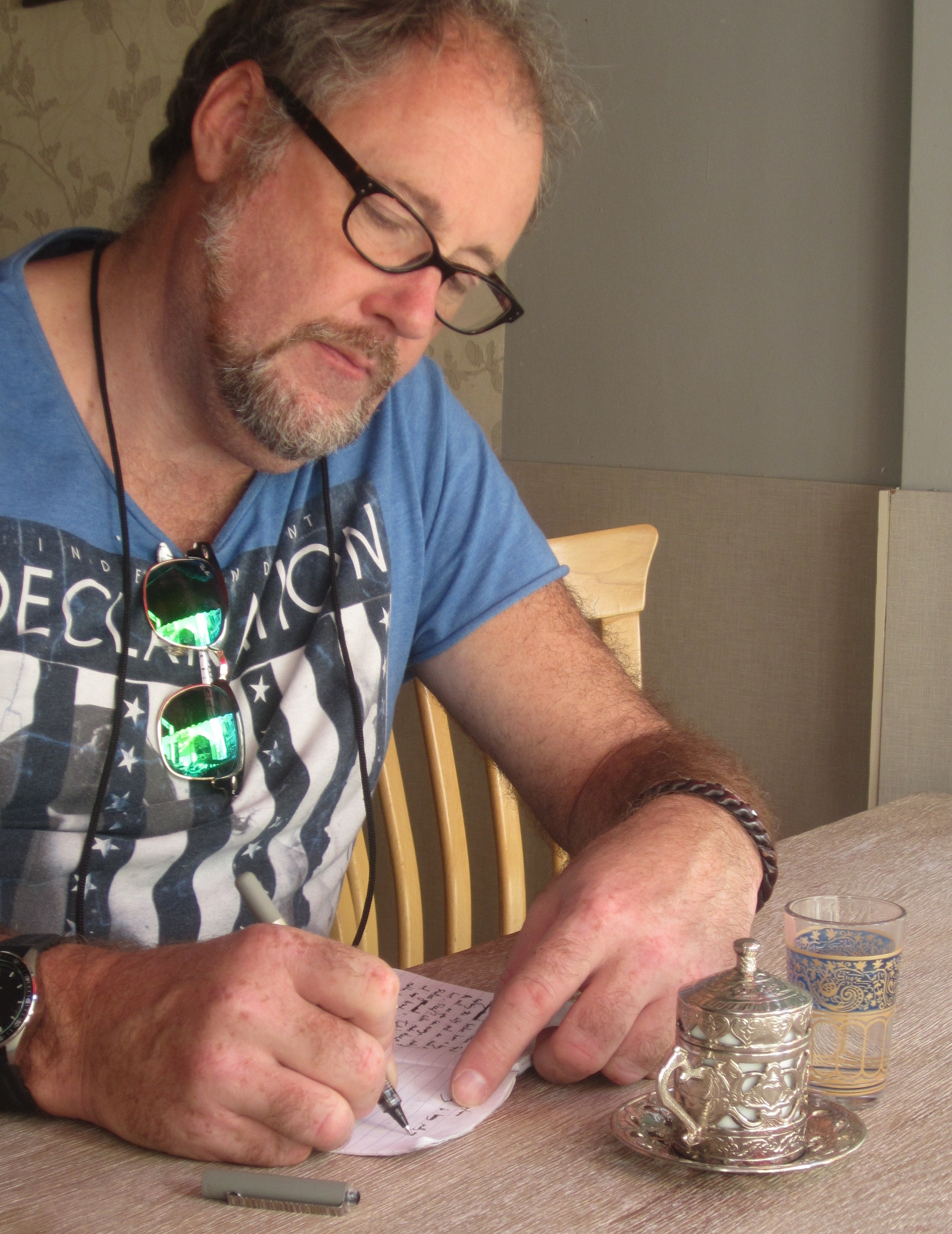 Janek critiquing a humourous verse written for him (April 2015)