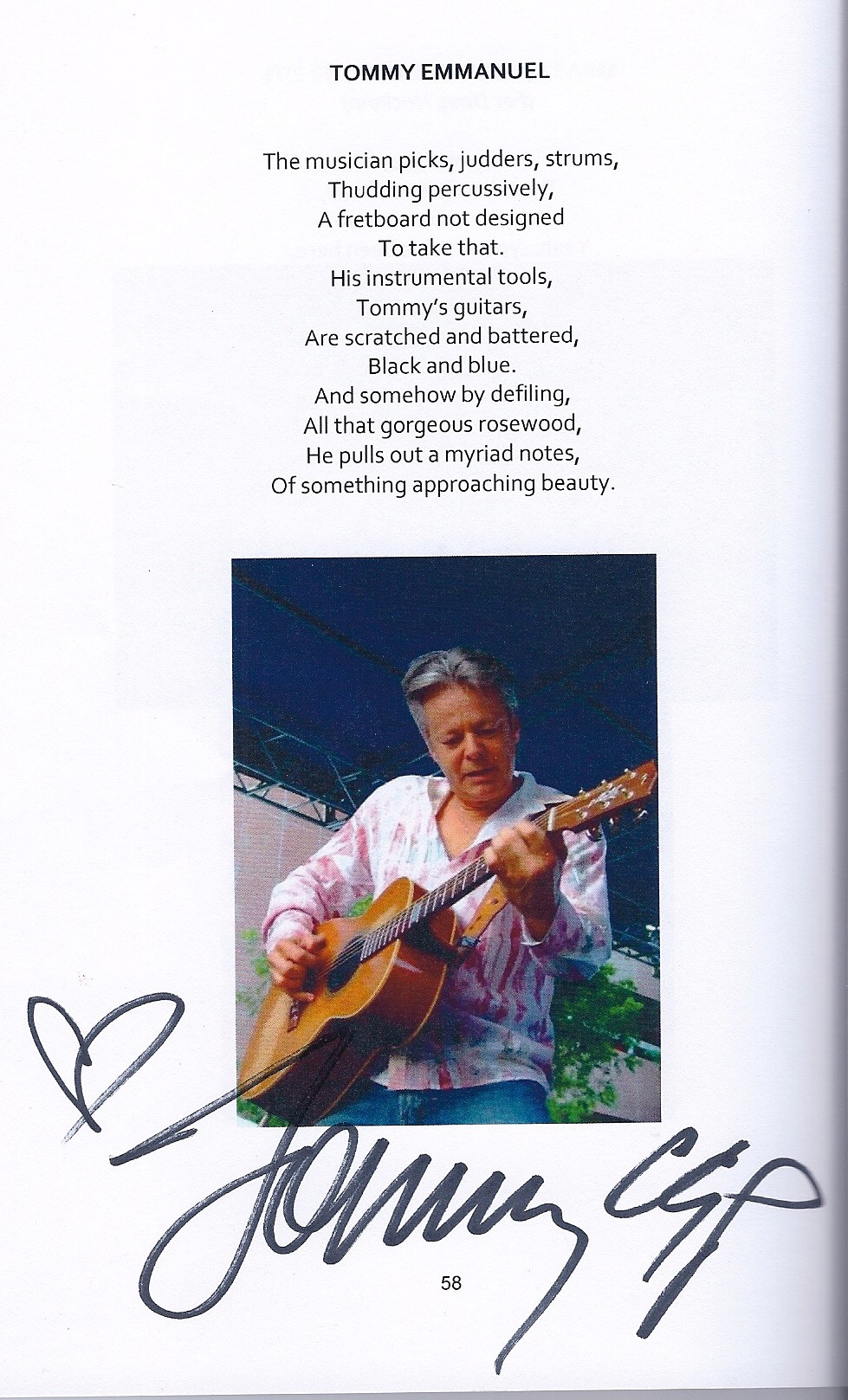 Hey, amazing guitarist Tommy Emmanuel likes his poem!